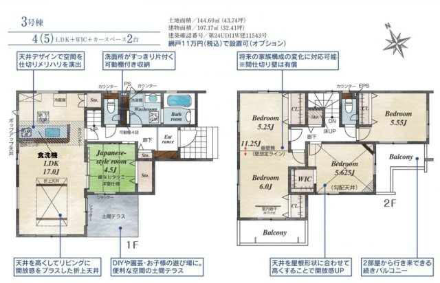 - 43.44坪~44.7坪(143.61㎡~147.79㎡)