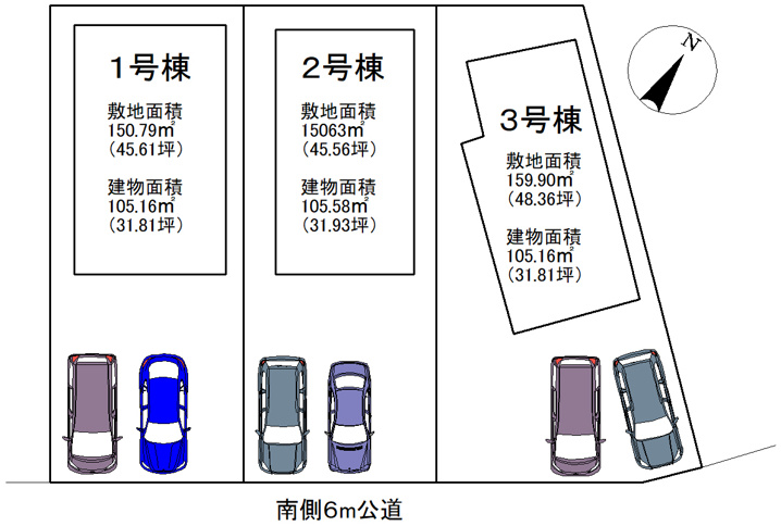 ●南西角地を含む3棟 ●全棟陽当たり良好