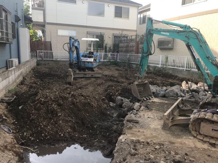 今回の契約内容は、解体更地渡しでした。古家は解体したものの、建物の基礎部分が残っていたのでは、新しい建物の建築工事は当然できません!よって、この地中内埋設物の撤去費用は売主様の費用負担で撤去しなければなりません…。売主様にとっては厳しいお話になってしまいますが、ご相談しない事には全ての工事がストップしてしまいます。