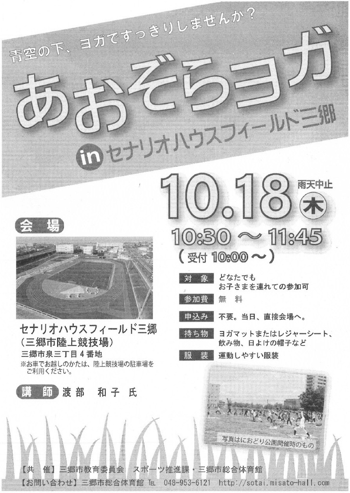 【三郷市】あおぞらヨガ in セナリオハウスフィールド三郷