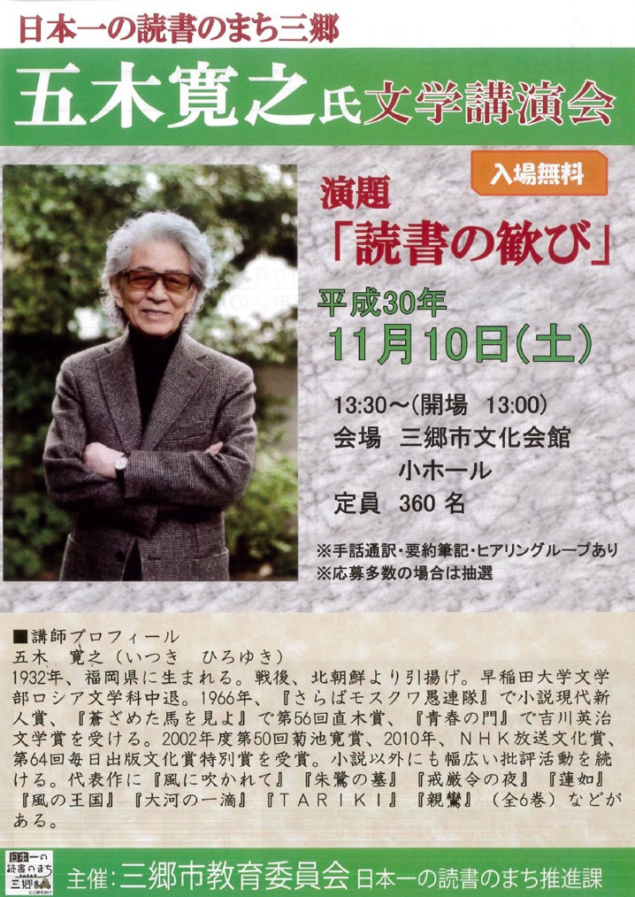 【三郷市】五木寛之先生来る!!