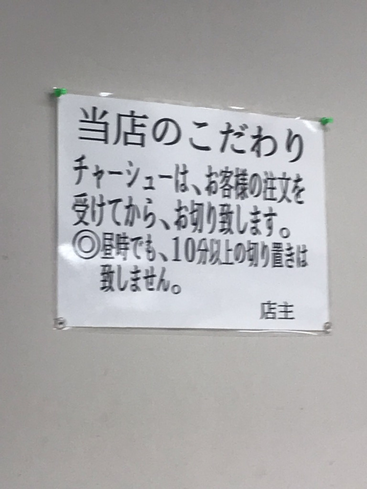 こんな張り紙が店内に貼ってありました!!店主のチャーシューに対する気持ち『お客様においしいチャーシューを提供するんだ!!』という覚悟が見えました!!