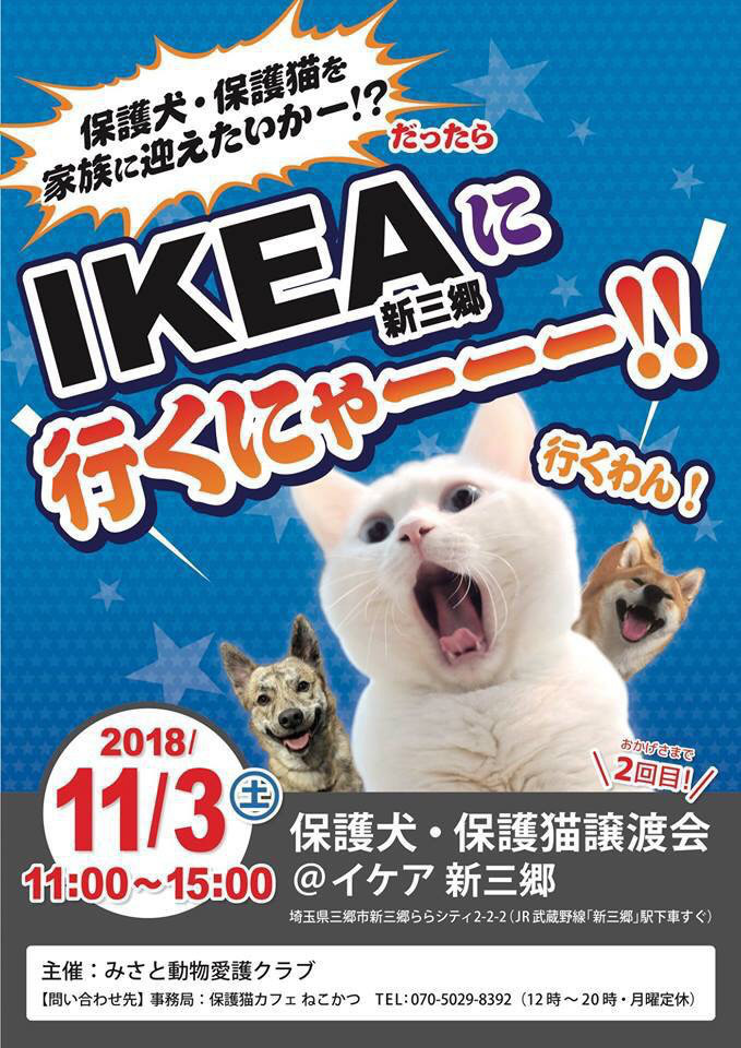 【三郷市】IKEA新三郷に行くにゃー!保護猫・保護犬の譲渡会開催