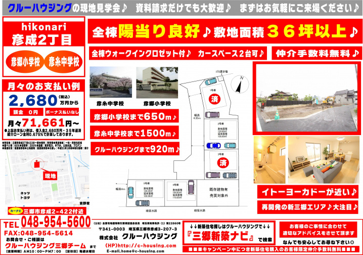①【あと2棟 中央4丁目 新築戸建 三郷中央駅 徒歩10分 4,199万円~】
