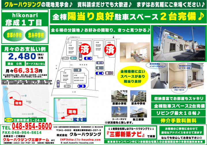 ②【彦成1丁目 新築戸建 あと4棟 陽当良好 敷地広々 駐車2台可 2,399万円~】
