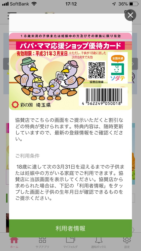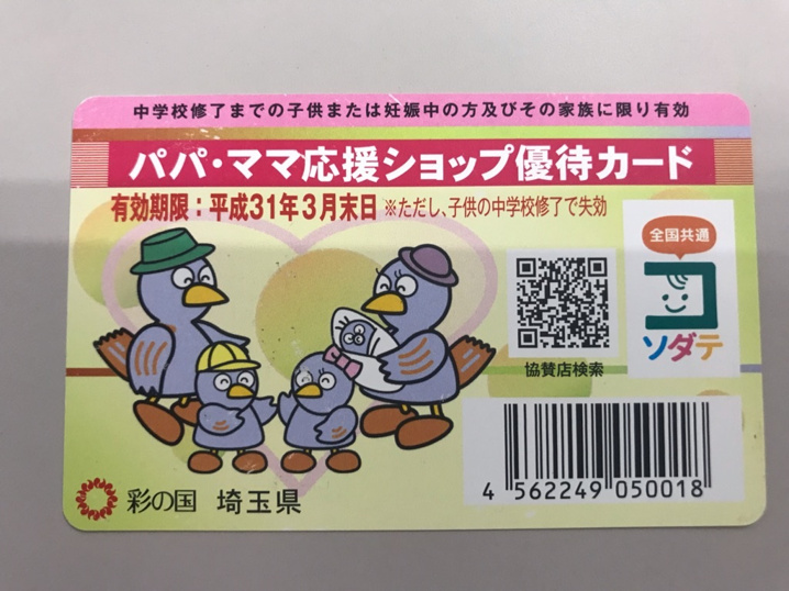 【お得情報】パパ・ママ応援ショップ優待カードがアプリで表示できるようになってました!!