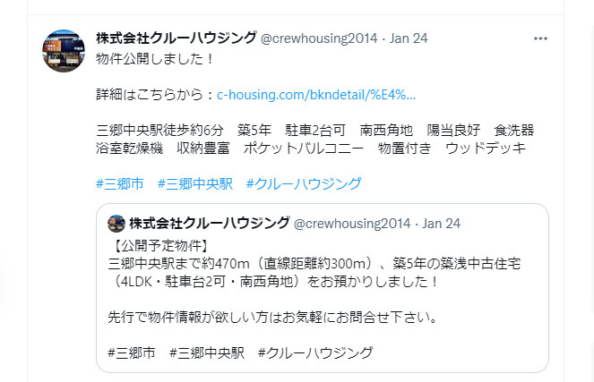 Twitterでも物件のお知らせしていたので↑↑