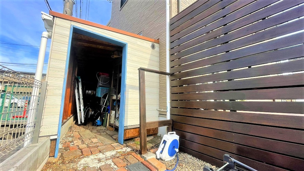 建物の脇には物置があります!