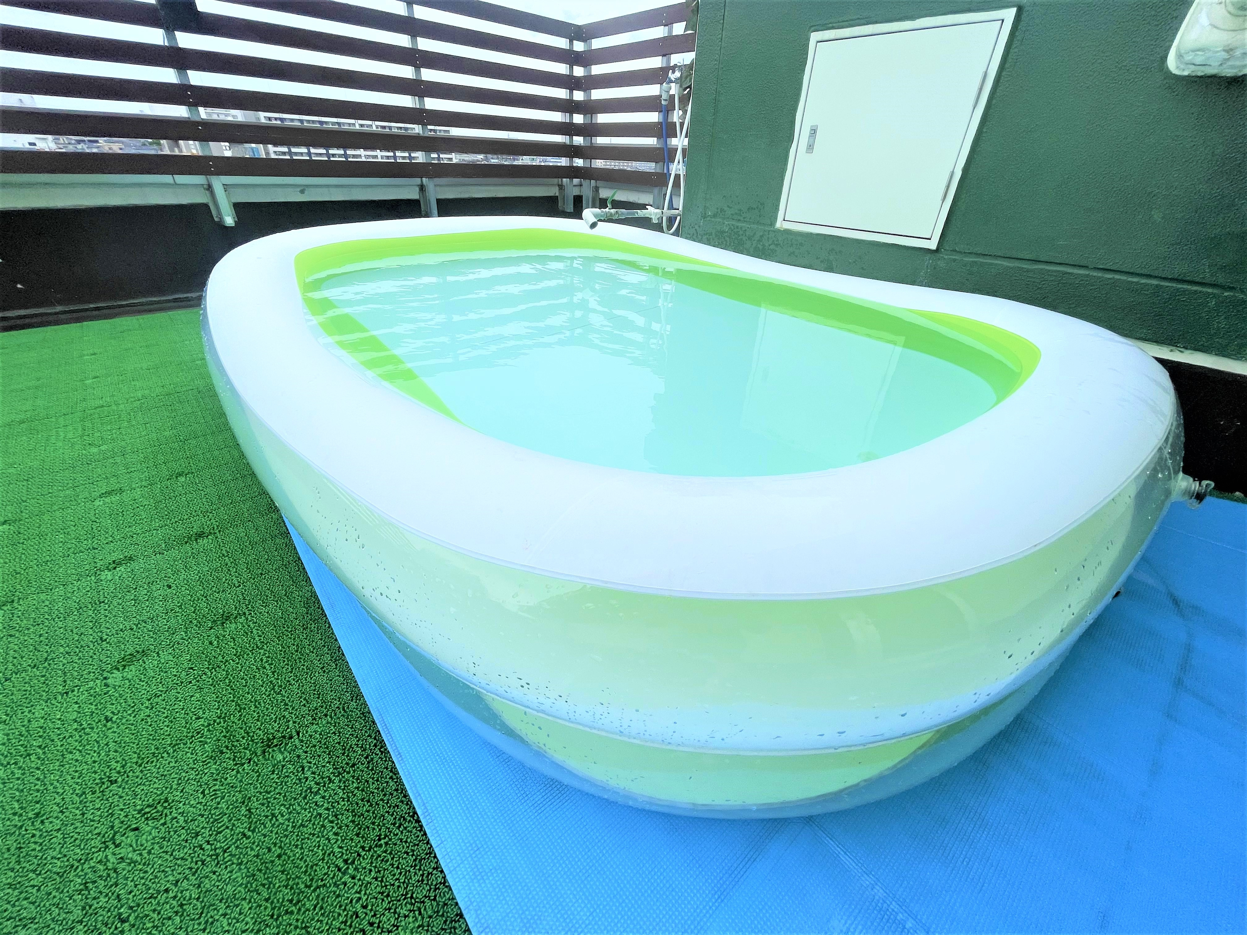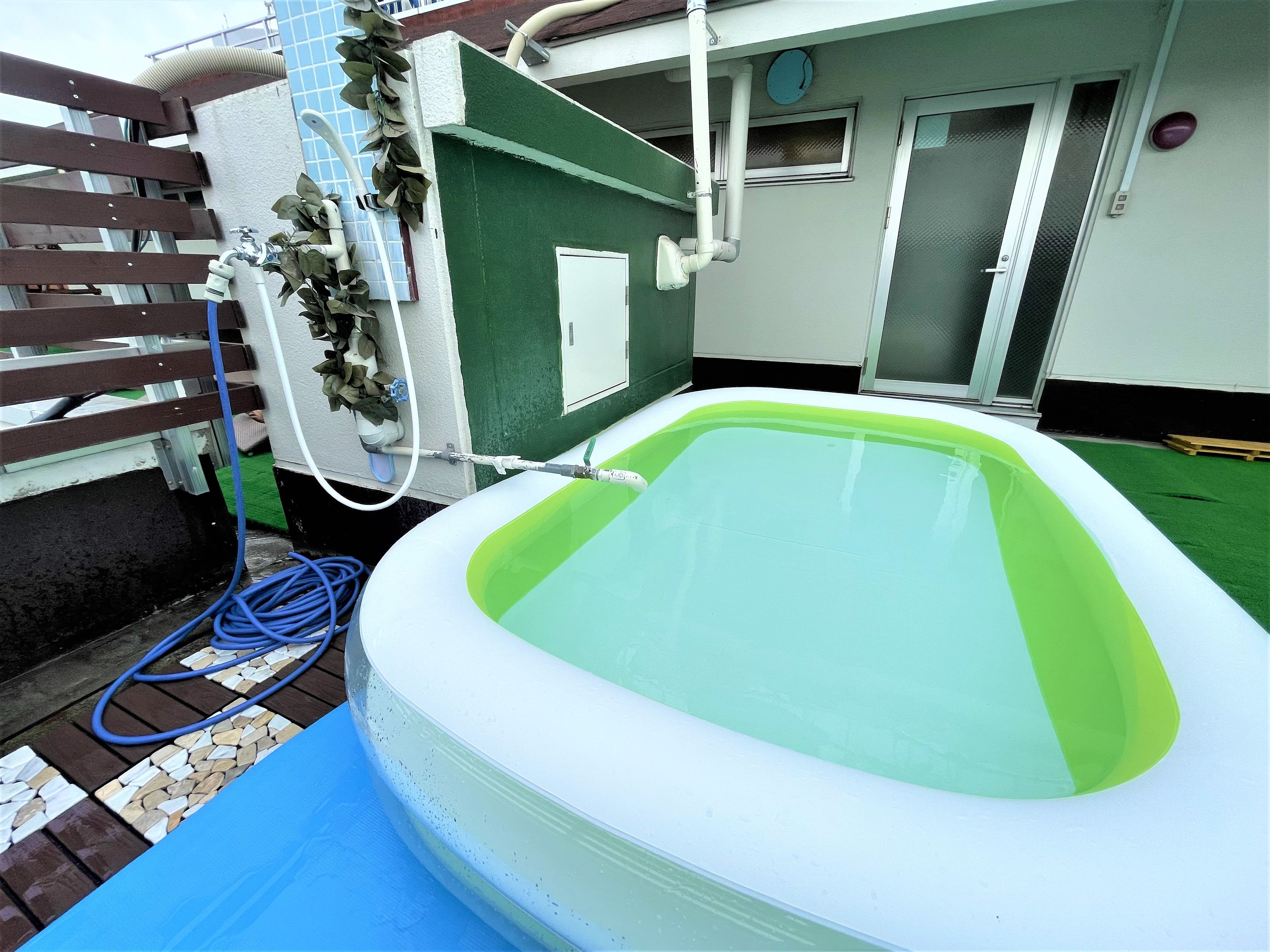 簡易プールに常温水が用意されています