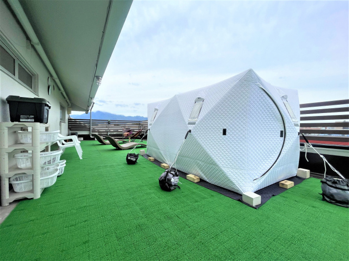 テントサウナは4F屋上で営業しています