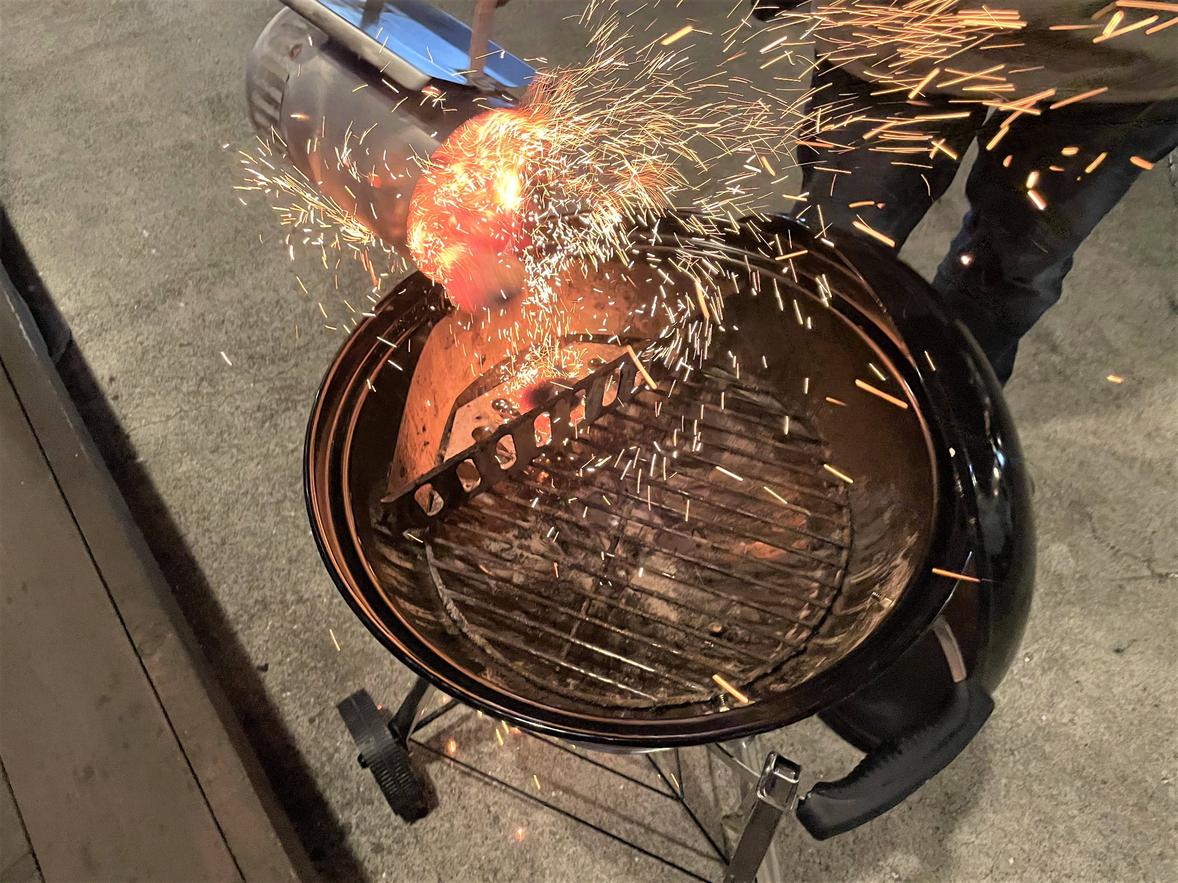 火のついた炭を入れてフタをすると、
