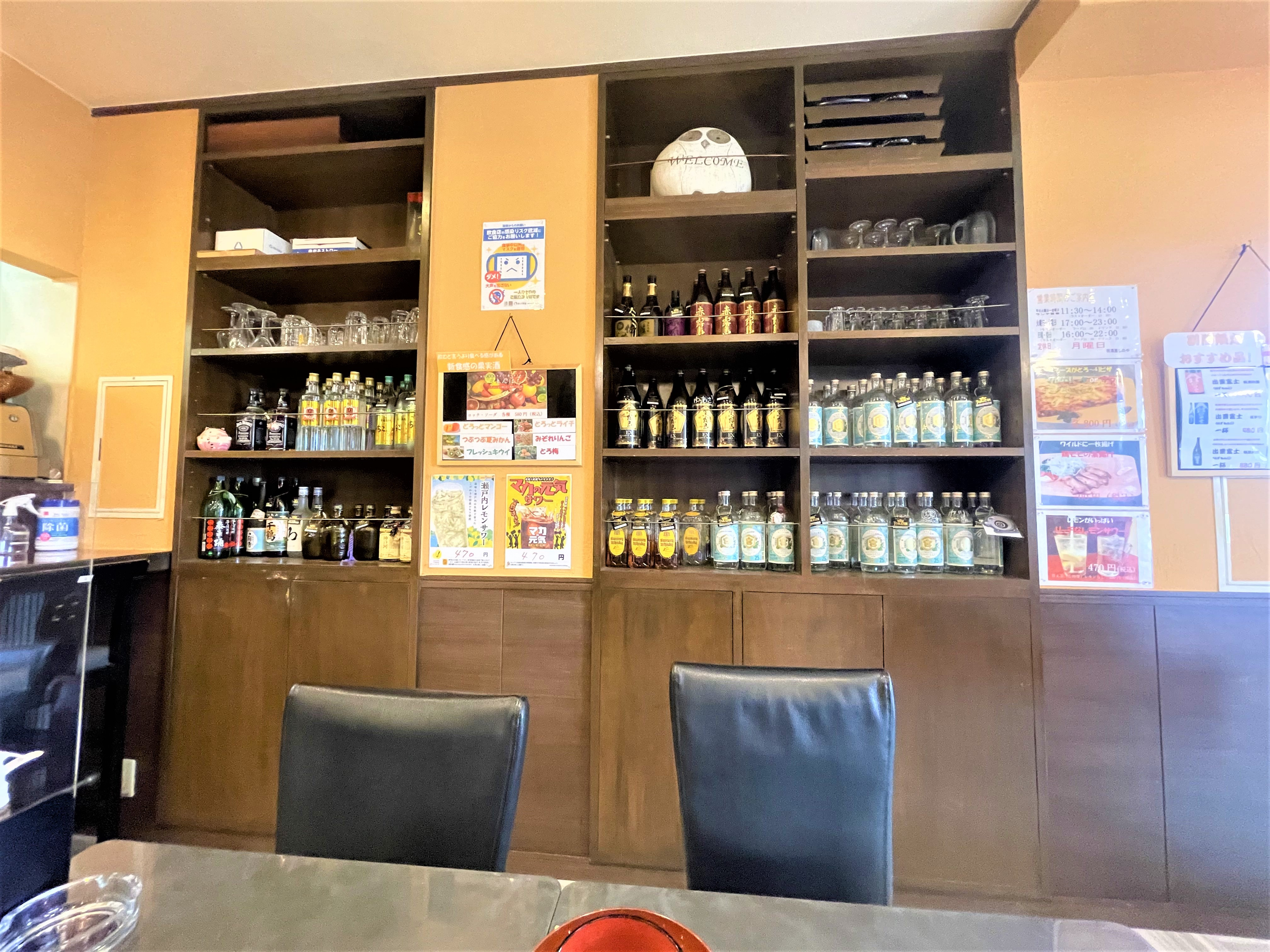 棚にはキープボトルがずらり