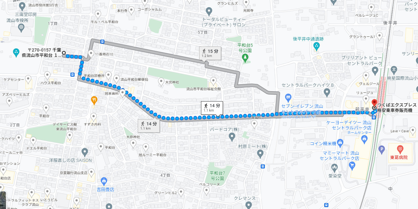 TX線「流山セントラルパーク」駅まで徒歩15分
