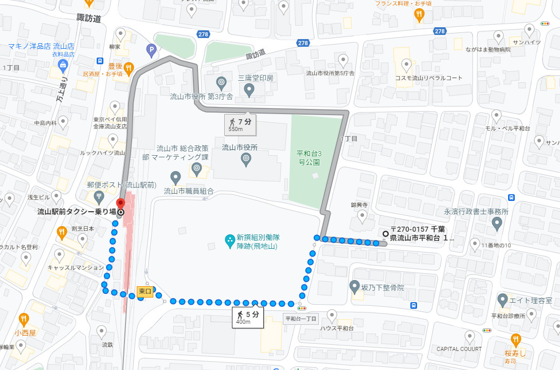 流山市役所に近い場所に位置しています