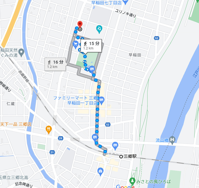 三郷駅までおよそ1.2キロ