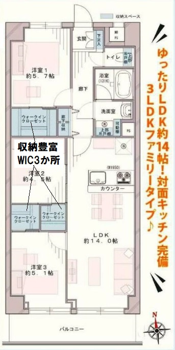 3LDK+WIC3ヶ所
