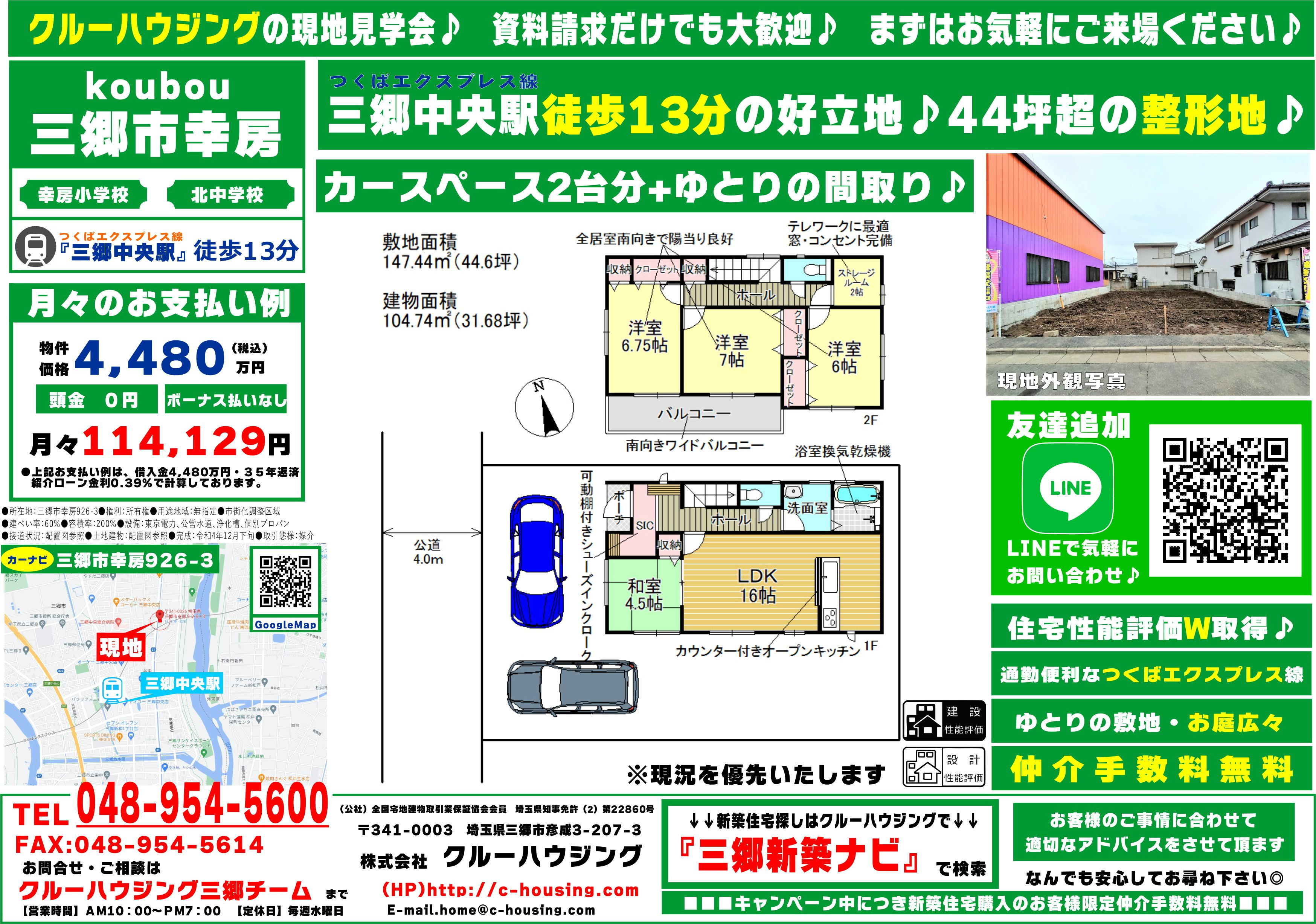 【新築】三郷中央駅徒歩13分!三郷市幸房にある新築戸建の販売を担当することになりました(^^)/
