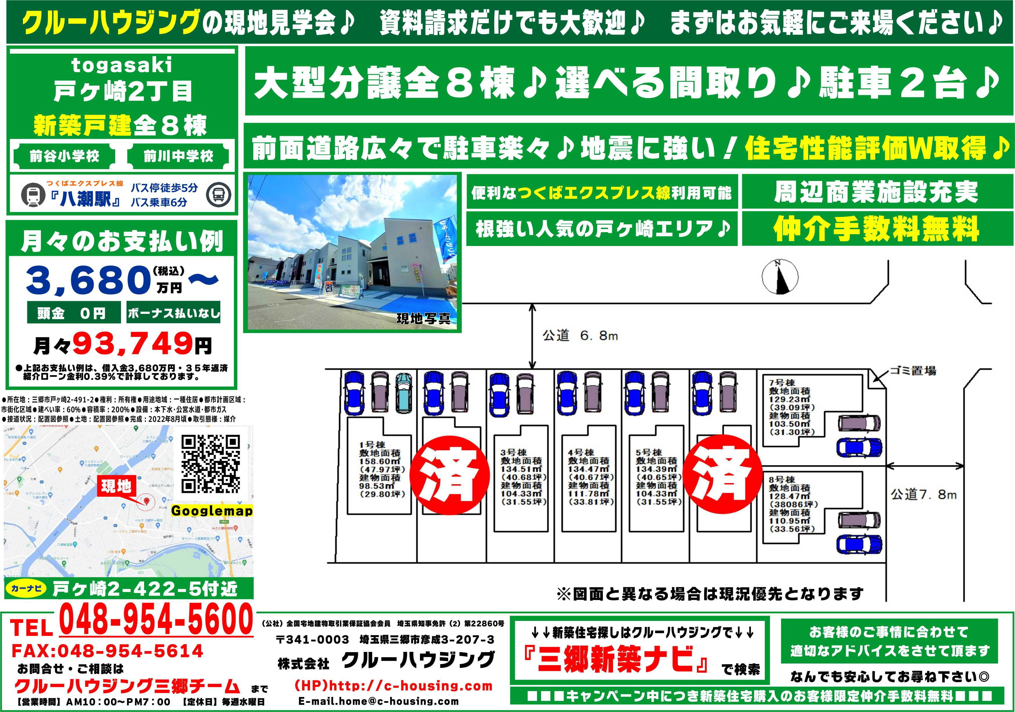 【新築】スグ見れます!全棟完成済!三郷市戸ヶ崎二丁目にある新築戸建全8棟のご紹介(^^)/