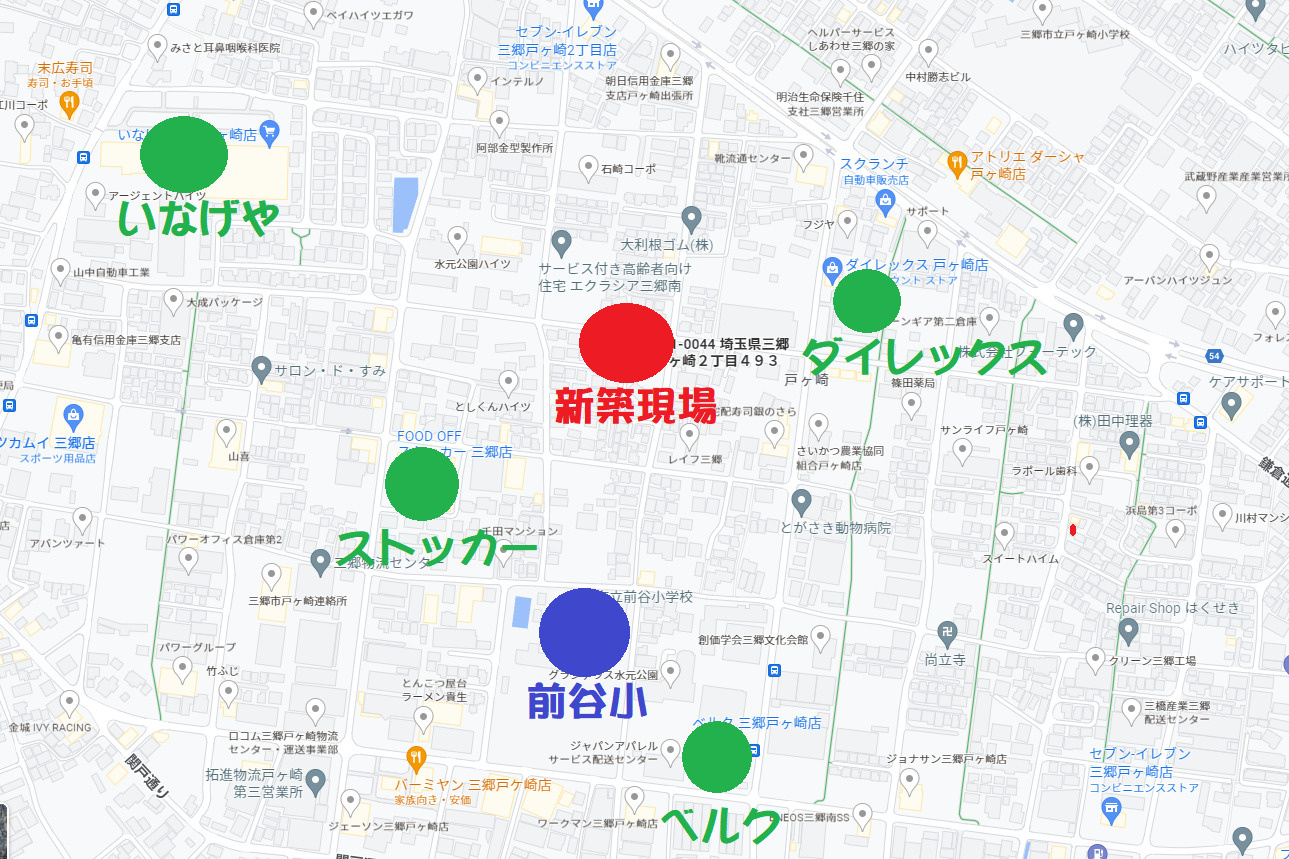 駅は遠いですが、スーパーなどの日用品を取り扱っているお店が充実しているのが戸ヶ崎エリアの特徴