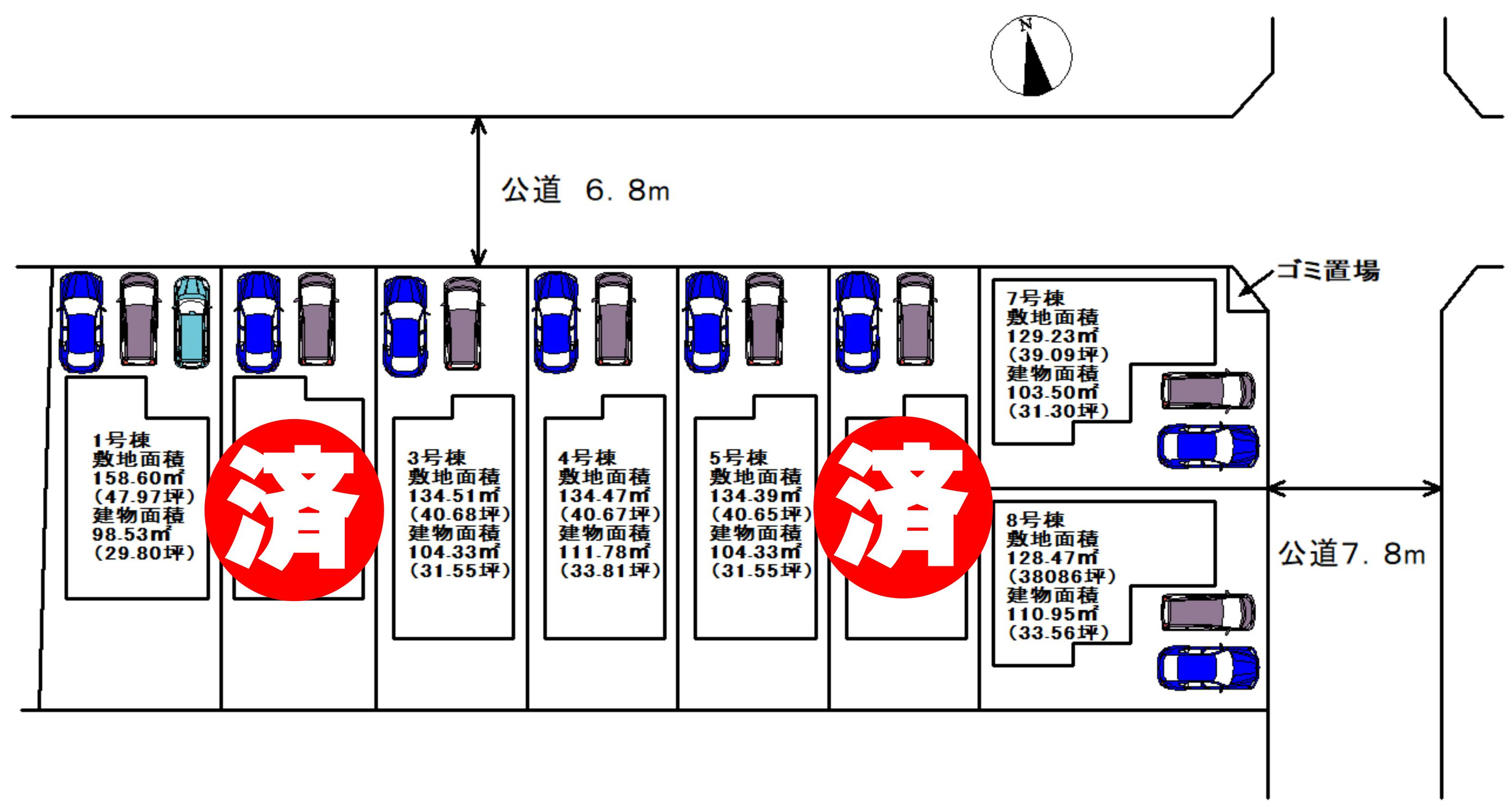 また敷地が広いので、どの号棟も駐車場にゆとりがあります
