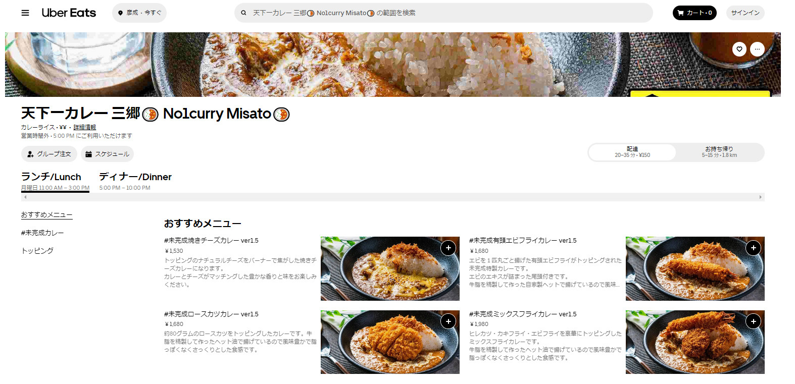 【三郷市】今日からサービス開始!牛すじと野菜を10時間煮込んで作るオリジナルカレー!「天下一カレー」をウーバーで頼んでみました!
