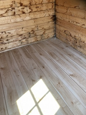 次の作業は敷いた下地にフローリングを貼り付けます。