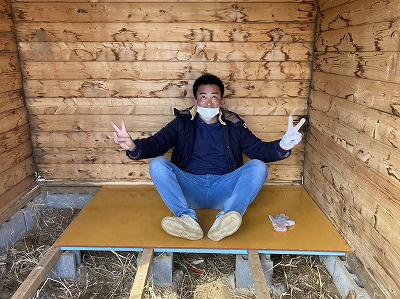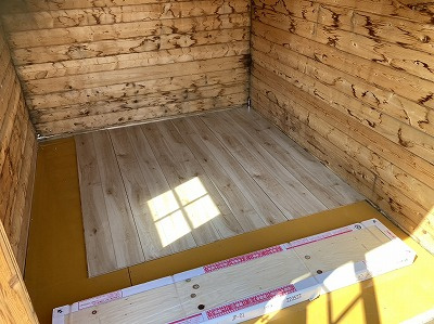 前回の記事にも書いたのですが、床貼りは友人に手伝ってもらいました。