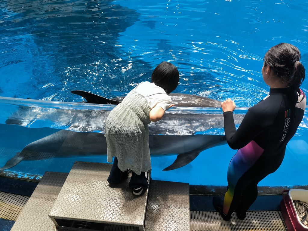 普段はなかなか間近で見ることのないイルカに、実際に触れられるという貴重な体験。 愛娘も最初は少し緊張していましたが、優しく触れたあとは満面の笑顔に。 イルカの肌は思った以上にツルツルで、ゴムのようなひんやりした感触。 とても不思議な触り心地でした。 スタッフの方が丁寧に誘導してくれるので、小さなお子様でも安心して楽しめます。 この体験は予約制&時間限定なので、訪れる際は事前にチェックしておくのがおすすめです!