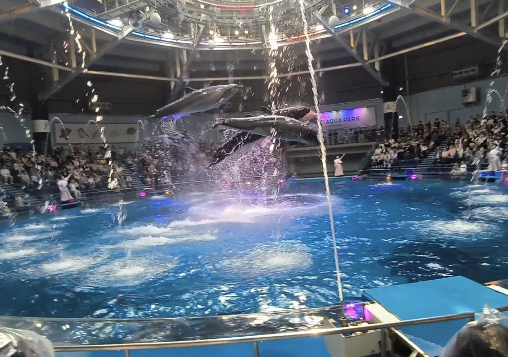音楽に合わせてイルカたちがジャンプし、光と水しぶきが融合した演出は圧巻の一言。
