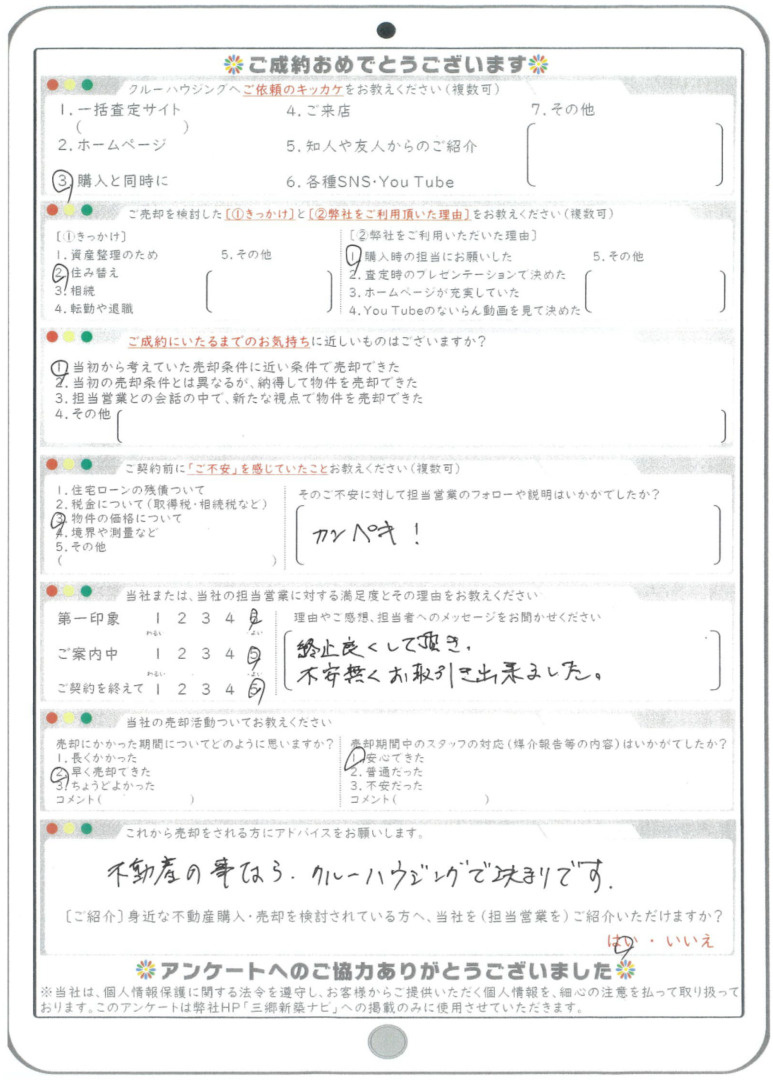 【お客様の声(売却)】令和7年4月吉日 M様の声