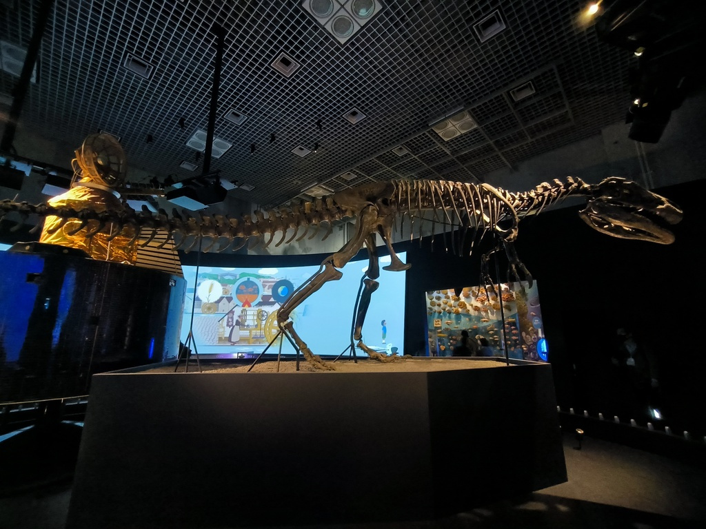 そのサイズ感に圧倒されつつ、クジラの生態について学べるエリアをじっくり見学。