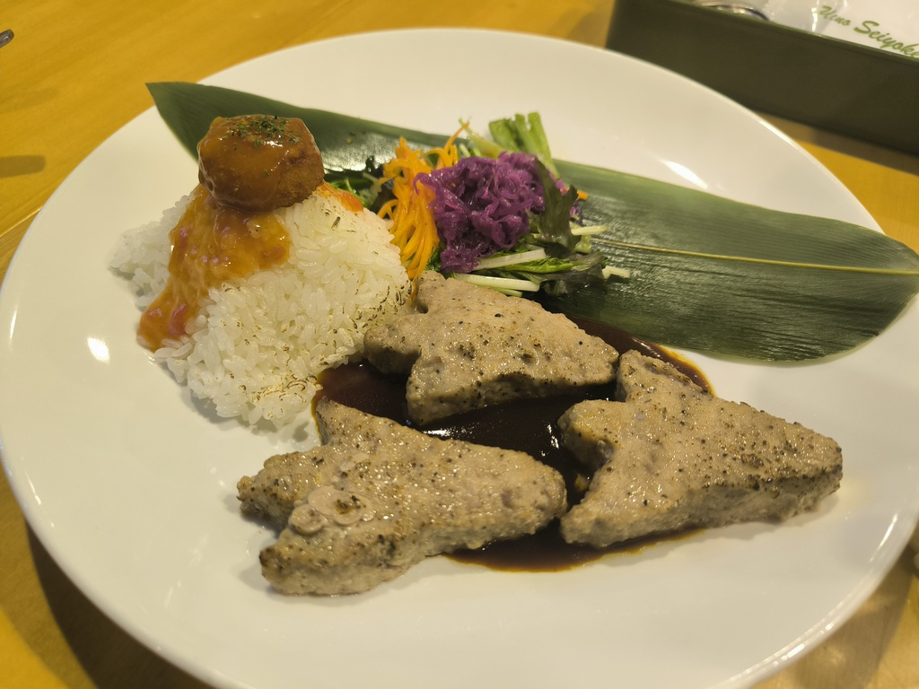 ③こどもも大人も楽しめる「かはくランチ」 館内をたっぷり歩いたあとは、併設のレストランでランチタイム。 ここでは「恐竜」や「海の生き物」をモチーフにしたユニークなメニューが楽しめます!