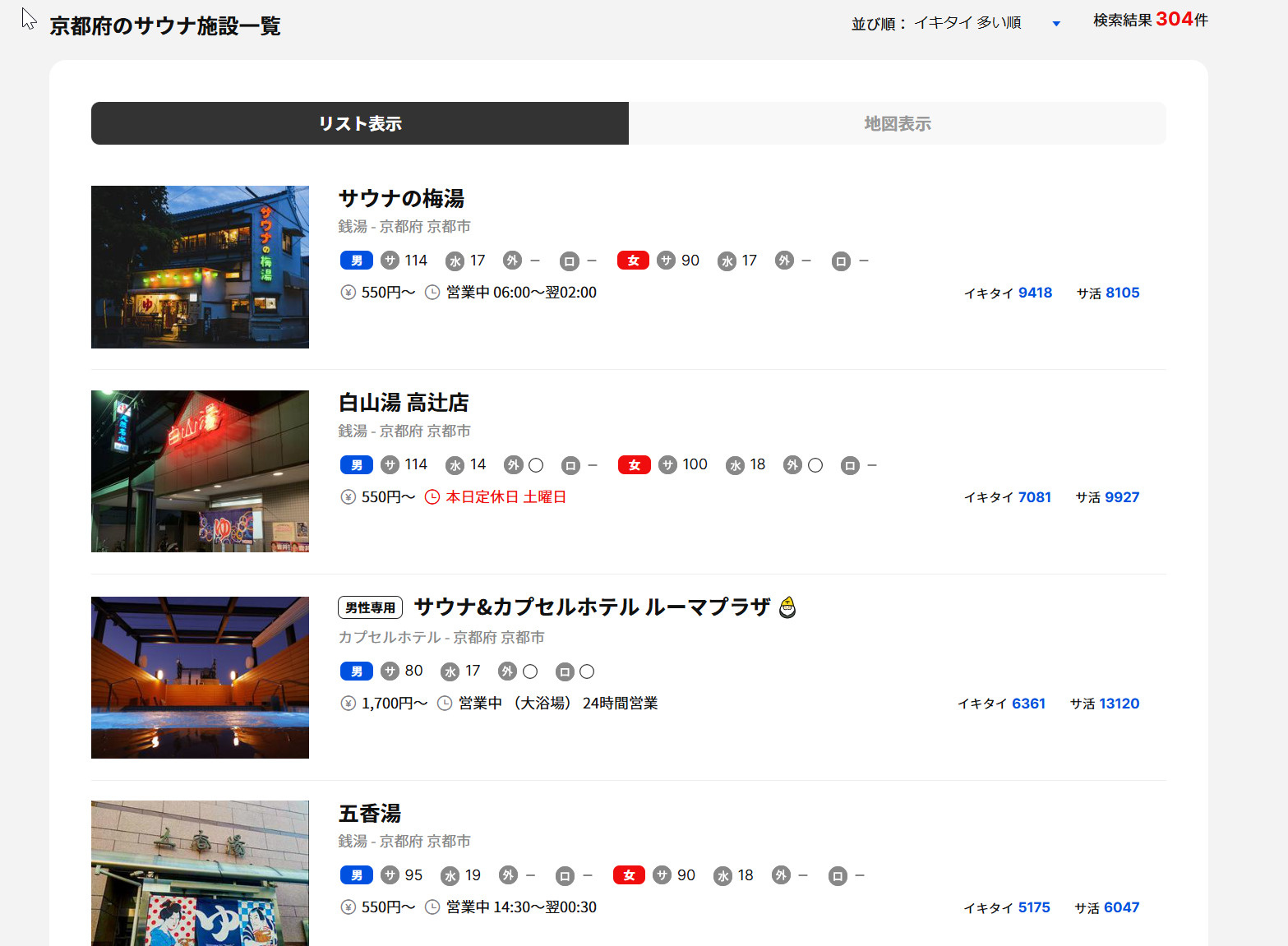 ドラマ「サ道」でも紹介された、京都で1位のサウナ施設