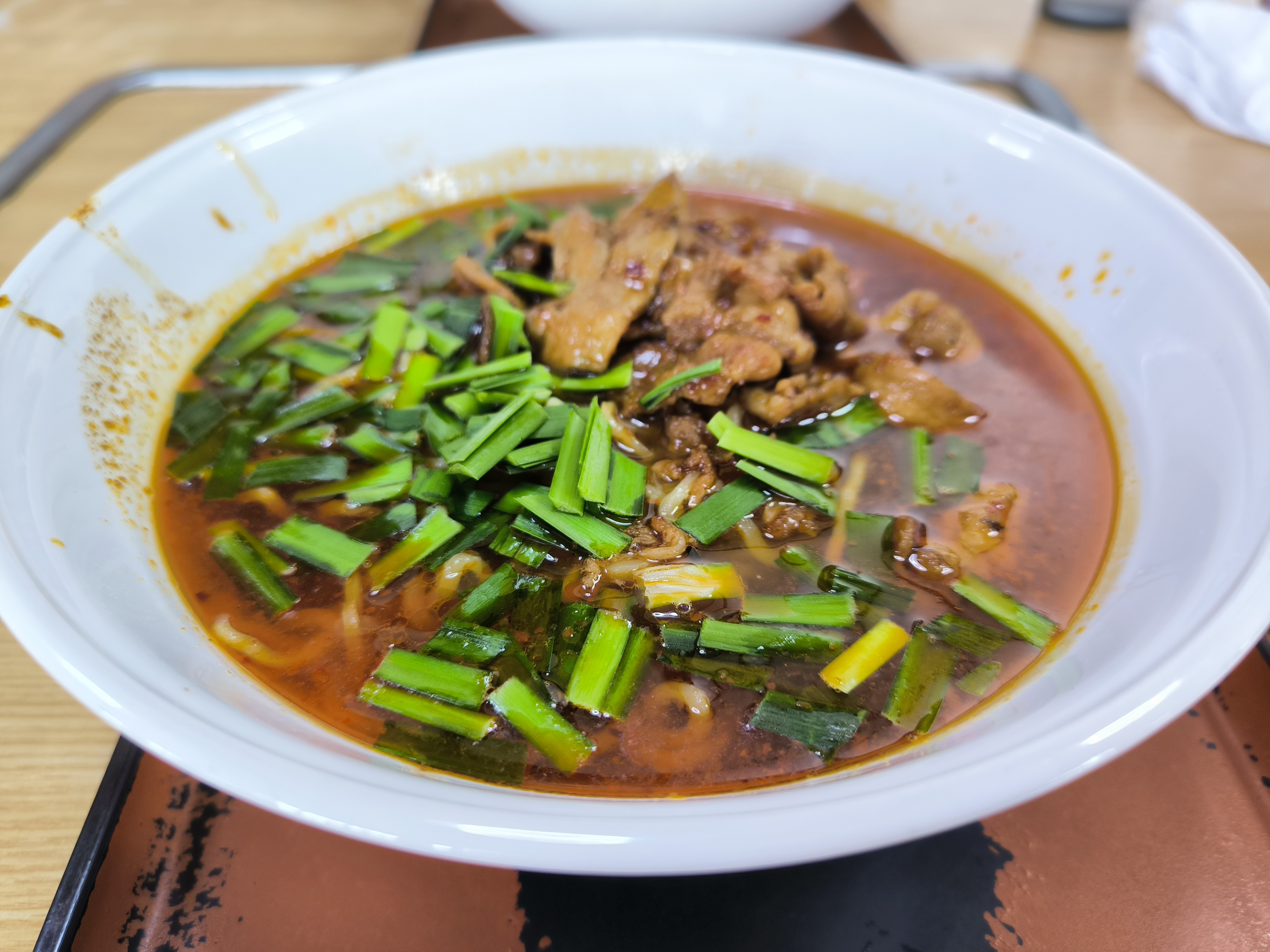 まず、目に飛び込んでくるのが、ニラとたっぷりの豚バラ肉、そして赤いスープのインパクト。