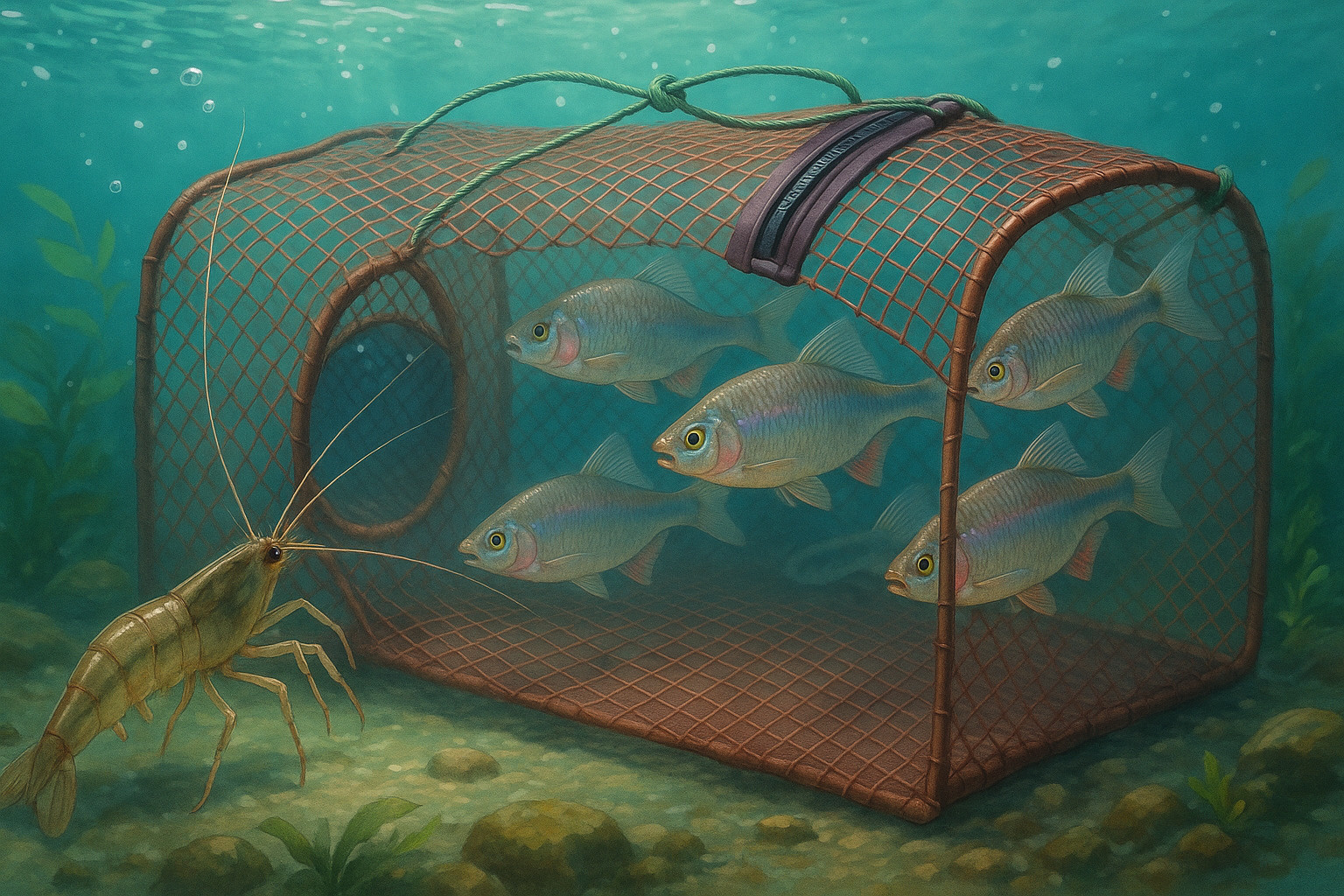 魚が罠にかかる間、息子と公園で遊び、良きタイミングで罠を引き上げると…。罠には無数の小魚!