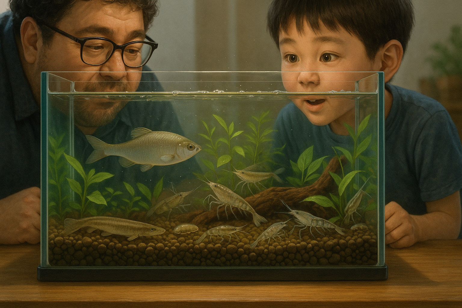 深井家の日淡水槽、だんだんとにぎやかになってきて観察がますます楽しくなってきました。