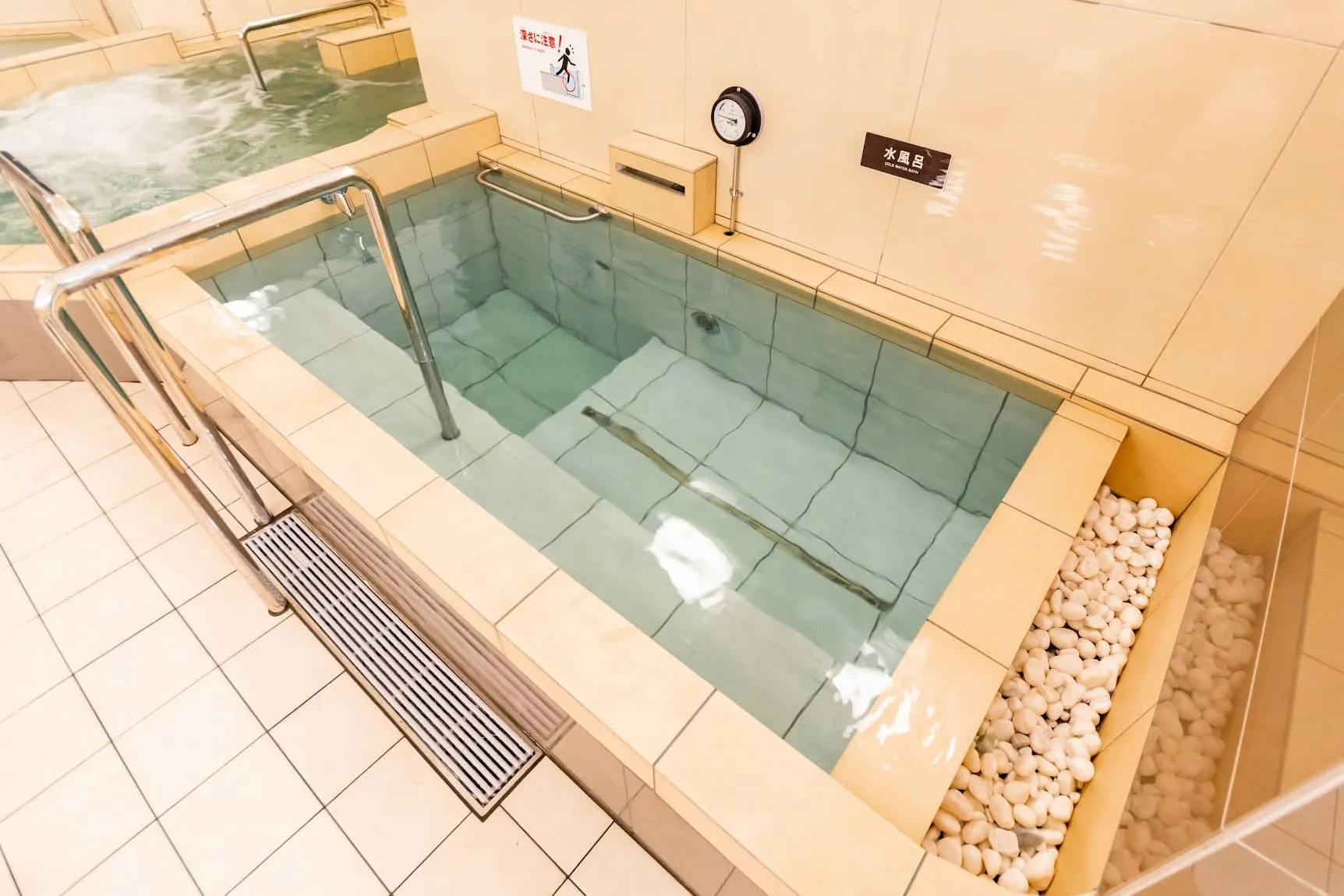水風呂は温度計18℃表記。