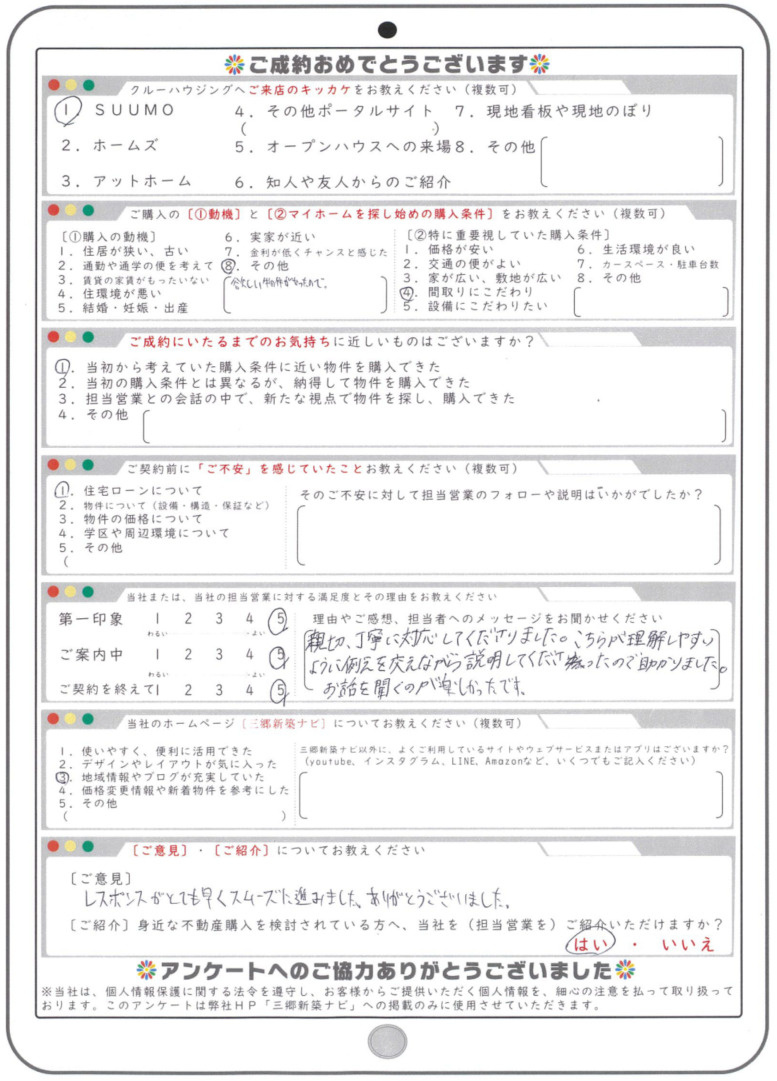【お客様の声(売却)】令和8年2月吉日 Y様の声
