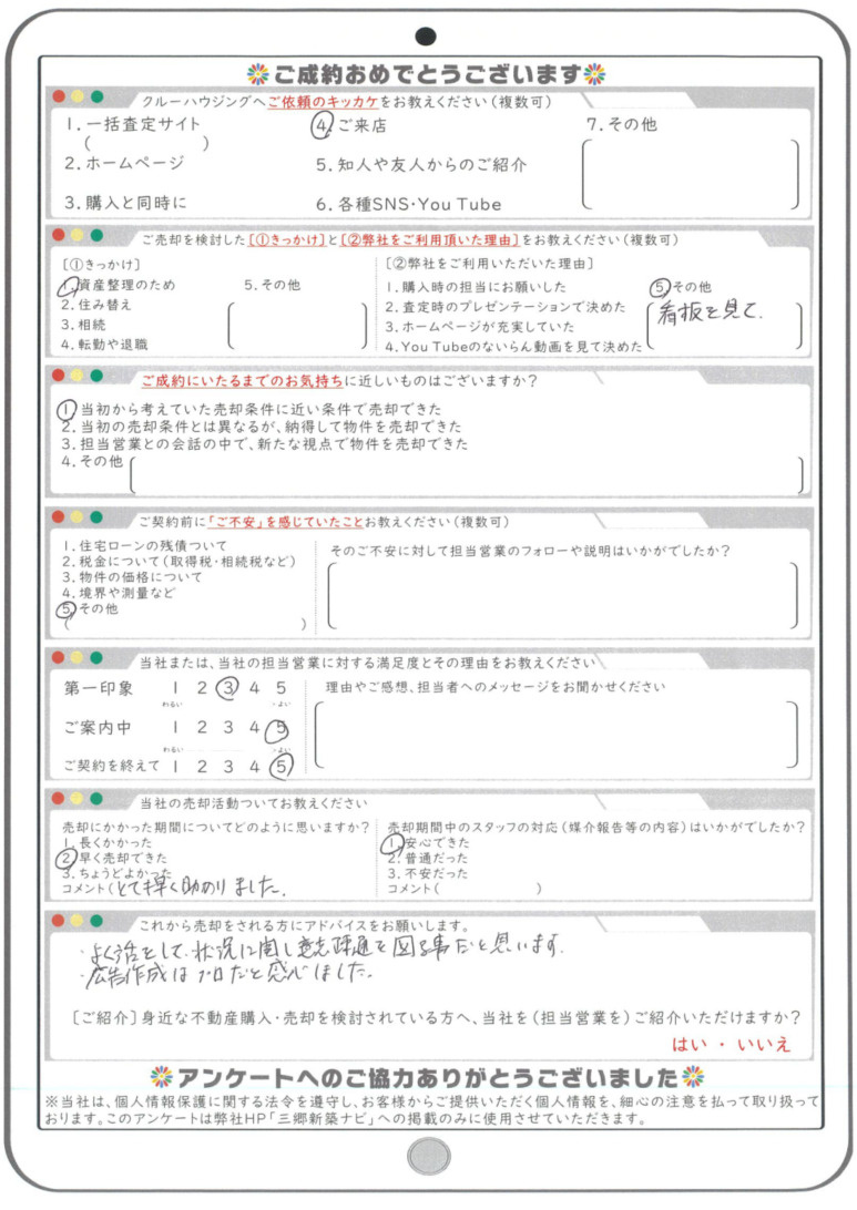 【お客様の声(売却)】令和8年2月吉日 Y様の声