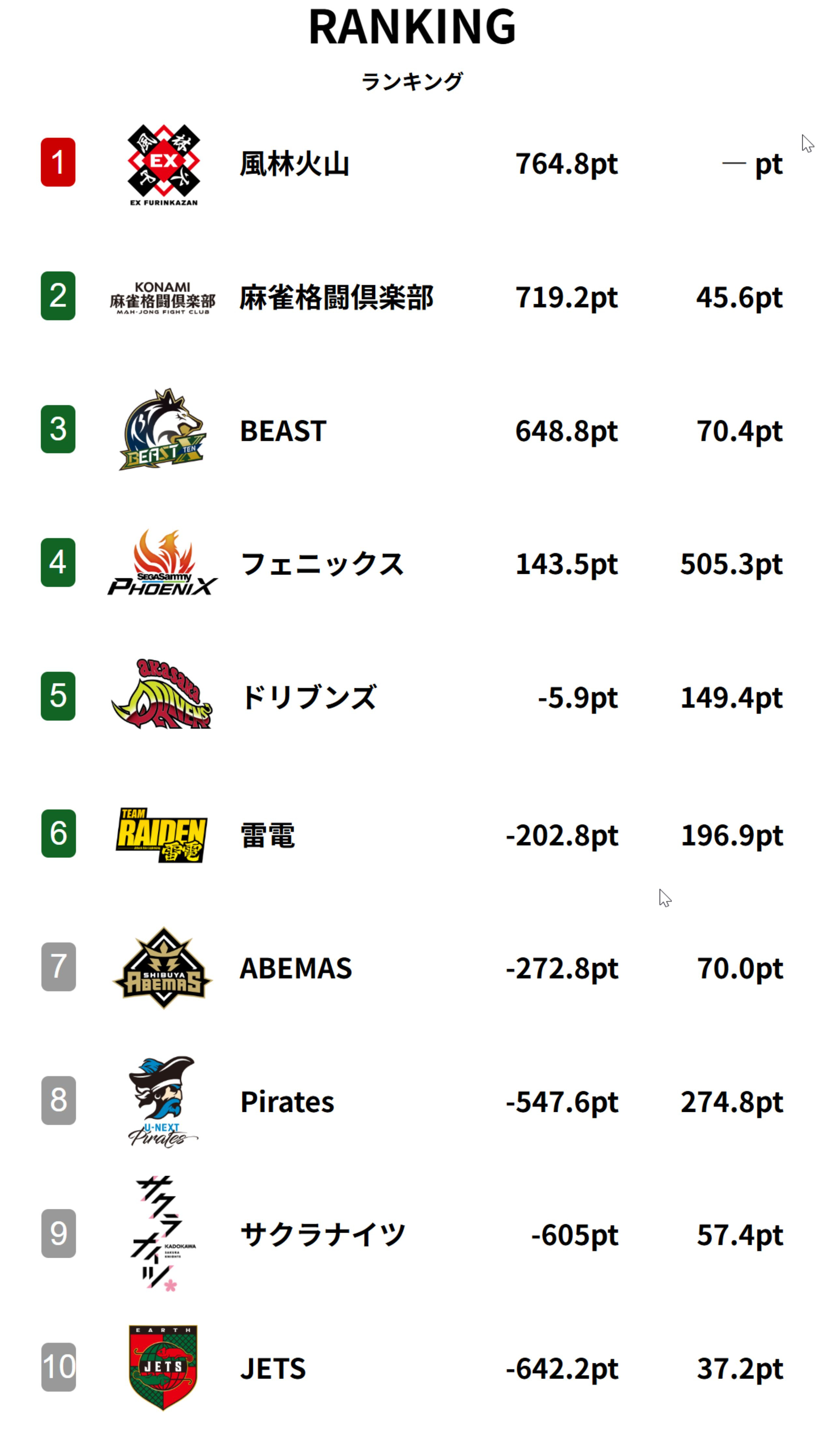 ここまで取れれば、パイレーツのチームポイントは**▲417.6pt**。