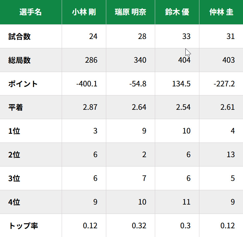 3/26は、ABEMASが熾烈なトップ争いに巻き込まれて、理想としては4着・3着で▲60pt。